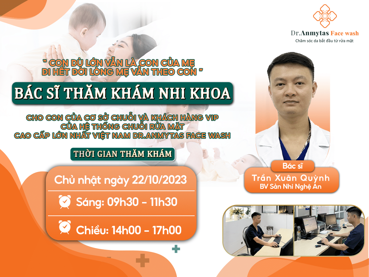Chương trình “Thăm khám nhi khoa” do Hệ thống Chuỗi rửa mặt cao cấp Dr.Anmytas Face Wash đứng ra tổ chức mời đến bác sĩ Trần Xuân Quỳnh – Bác sĩ tại bệnh viện Sản nhi Nghệ An với nhiều năm kinh nghiệm.